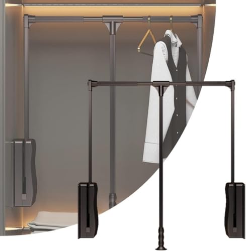 Tringle de penderie escamotable réglable - Mécanisme de levage ralenti - Design en alliage d'aluminium peu encombrant