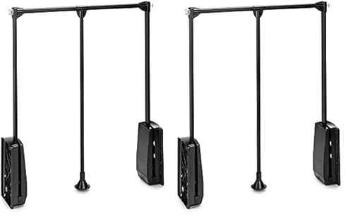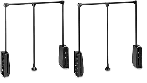 Emuca - Barre de penderie escamotable, tringle relevable, penderie rabattable pour armoire, largeur réglable 830-1150mm, Noir (Lot de 2)