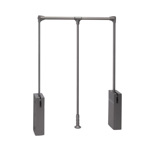 Emuca - Barre de penderie escamotable, tringle relevable, penderie rabattable pour armoire, largeur réglable 600-830mm, gris pierre