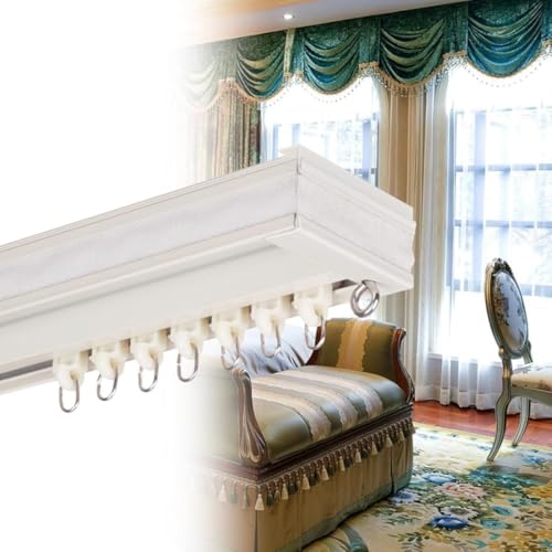 Caisson de Rideau occultant réglable avec cantonnière et Cache-Tringle Amovible pour Fixation Plafond/Mur, sans Rail, Panneau déflecteur élégant, Longueur de 1 à 6 m (350 cm) pour Un contrôl