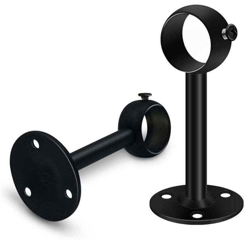 Jeu de 2 supports de tringle à rideau noirs robustes pour tringle de plafond, supports de tringle à rideau en acier inoxydable de 25 mm, supports de