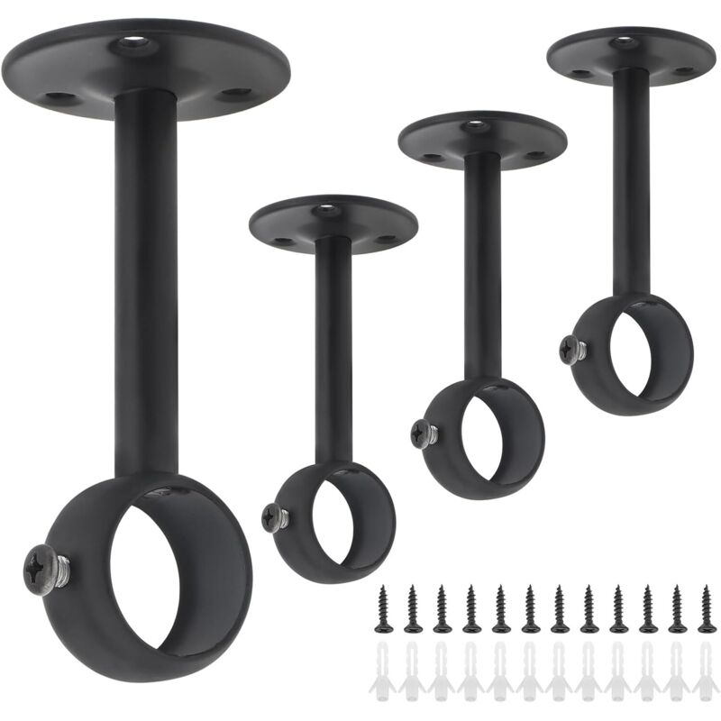 Supports pour tringles à rideaux, 4 pièces Acier inoxydable Robuste Support de tringle à rideau pour plafond pour tringles à rideaux de 25 mm (4,