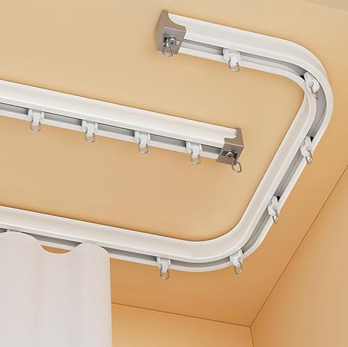 Rail de Rideau Incurvé de Plafond Support Pliable pour Tringle à Rideaux Lit Superposé Fenêtre en Baie Séparateur de Pièce Droit Flexible (Blanc, 3 m/ 9,8 ft)