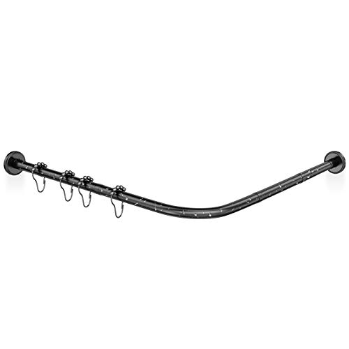 Misounda Barre de Douche Angle, Tringle Rideau Douche Angle en Acier Inox, 122x190 cm Réglable Barre Rideau Douche Noir, Tringle Douche Angle avec Inox Anneaux pour Salle de Bain/Baignoire/Vestiaire