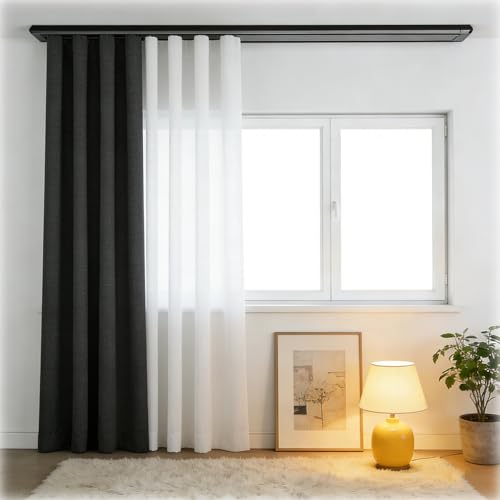 Rail Rideaux Plafond Double Tringle à Rideaux Noire Coulissantes et Silencieuses Pour Camping Cars Fenêtres Bureaux Hôpitaux et Dressings 250cm 260cm 270cm 280cm 290cm 300cm(Black,17.1ft/520cm)