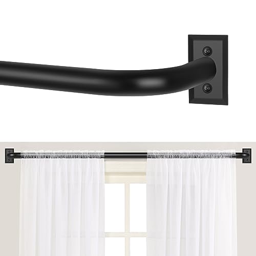 TANGWIN Tringle à rideaux noire de 71,1 à 122 cm : tringle à rideaux occultante et réglable pour chambre à coucher, cuisine, moderne, industrielle, incurvée, retour français, facile à installer, noir