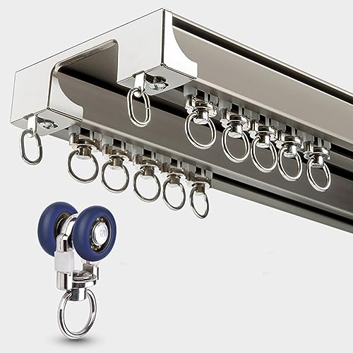 Rail De Rideau De Plafond Double Rail Système De Rail Rideau En Aluminium Pour Séparateur De Pièce Salon Chambre Tringles À Rideaux Robustes(Color:Champagne-C,Size:250cm(2 * 125cm))