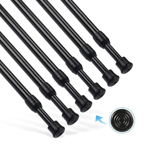 Goowin Lot de 6 tringles à rideaux extensibles sans perçage, ressort antirouille – Petites tringles de tension réglables pour placard, cuisine, placard, armoire, bibliothèque (noir, 55,9 à 88,9 cm)