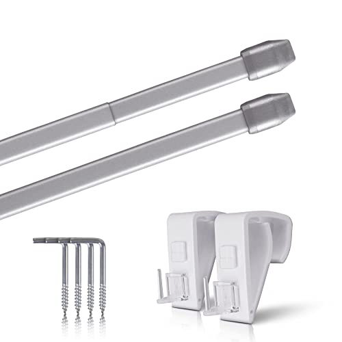 Lot de 2 tringles à rideaux vitrage extensibles avec crochets auto-adhésifs - Fixation sans perçage - (Couleur : argent, Taille : 110-150 cm)
