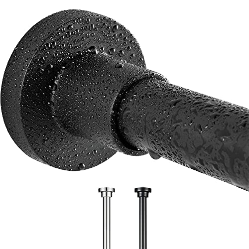ZipGlo Tringles à rideau de douche extensibles de 70 à 125 cm pour salles de bain, fenêtres, penderies, sans perçage, noires, 2 pièces, diamètre : 22 mm