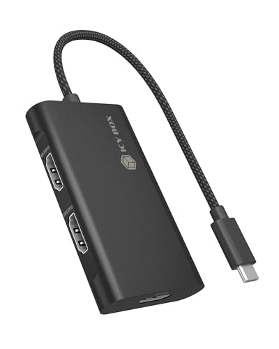ICY Box (Adaptateur USB-C vers 3 × HDMI) 8K @ 60 Hz, Double écran 4K @ 144 Hz, Triple écran 4K @ 60 Hz, USB 3.2 Gen 2, MST, câble de 20 cm, IB-AD1030-C