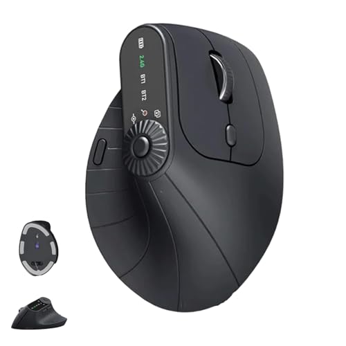 Générique Ergonomic Triple-Connect Wireless Mouse, Tri-Mode Wireless, Screen Display, Programmable Knob, Adjustable DPI 1000-2400, USB-C Recharge, Vertical Ergonomic Mouse (Black)