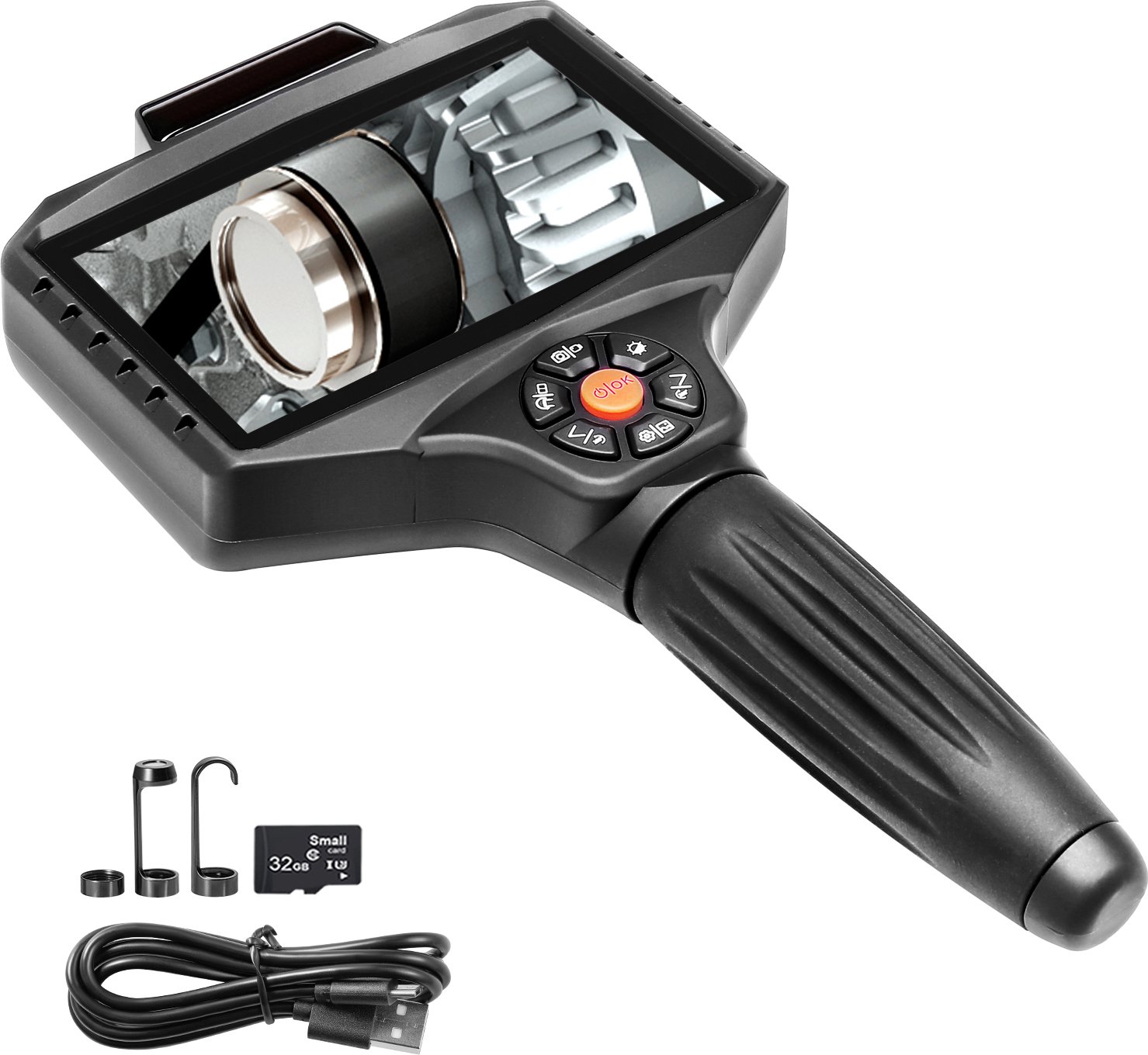 SucceBuy Caméra d'inspection à triple objectif avec lumière, 5" écran IPS endoscope industriel, zoom 8X, 1080P HD Split Screen, 10 lumières LED, caméra scope pour l'automobile, la plomberie, 16.5FT