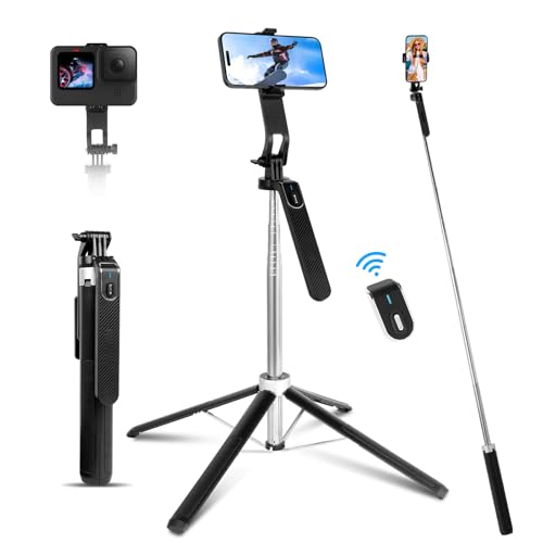 ULANZI MT-44 Perche à Selfie Bluetooth 147 cm, 2 en 1 Portable Trépied pour Smartphone Appareils Photo avec 360° Rotule, Support pour Téléphone, 1/4" Filetage, Tripod Compact pour Sony Samsung iPhone