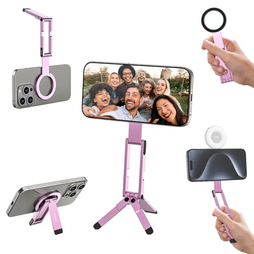 ULANZI MA60 Trépied Magnétique, 3-in-1 Aluminium Mini Selfie Stick Pliable, Force Magnétique 14N, Support de Téléphone Portable, Pocket Tripod Compatible iPhone 16 15 14 13 12 Magsafe, Sumsung, Rose