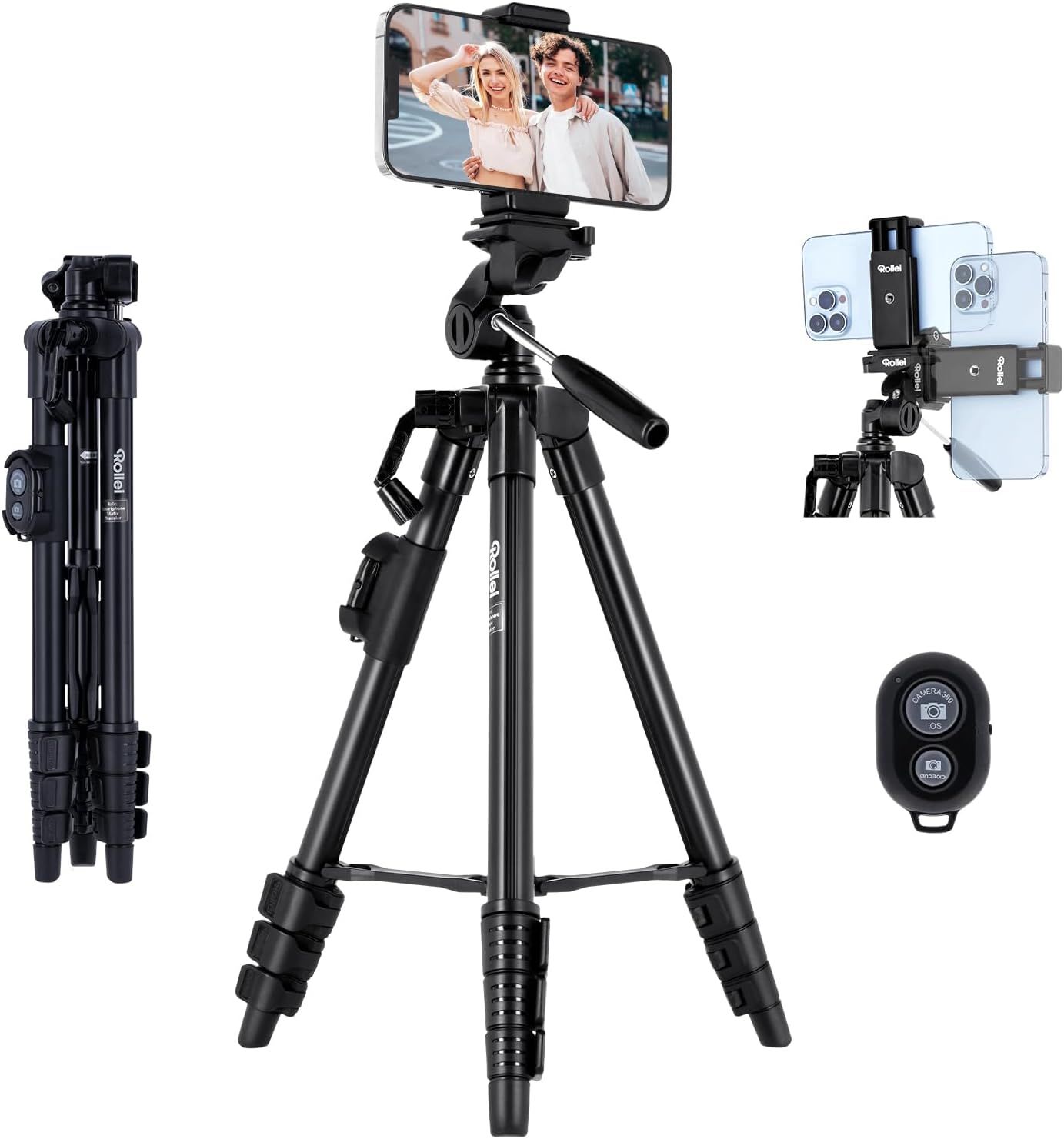 Trepied Appareil Photo Voyage 152cm, Rollei Compact Creator Trépied en Aluminium Léger & Portable Camera Tripod avec Support de Téléphone Intégré & Télécommande, Trepied-Appareil Photo-Voyage-Tripod