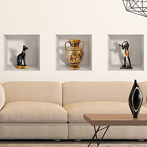 Stickers adhésifs 3D | Sticker Mural Autocollant effet 3D statuettes animaux et vase égyptien - Stickers muraux Chambre - Stickers muraux 3D - Déco Salon - Autocollants muraux Trompe l'oeil | 40x120cm