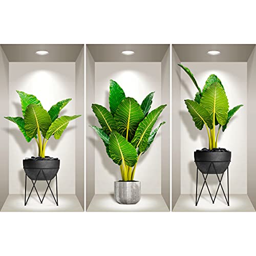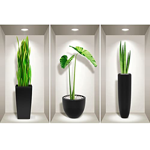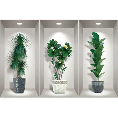 Stickers adhésifs 3D | Sticker Mural Autocollant effet 3D plantes d'intérieur - Stickers muraux Chambre Adulte - Stickers muraux 3D - Decoration Salon - Autocollants muraux Trompe l'oeil | 40x120cm