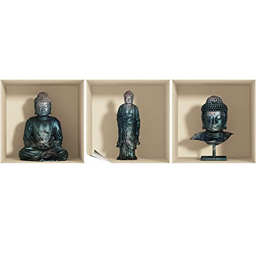 Stickers adhésifs 3D | Sticker Mural Autocollant effet 3D Bouddha - Stickers muraux Chambre Adulte - Stickers muraux 3D - Decoration Murale Salon - Autocollants muraux Trompe l'oeil | 40x120cm