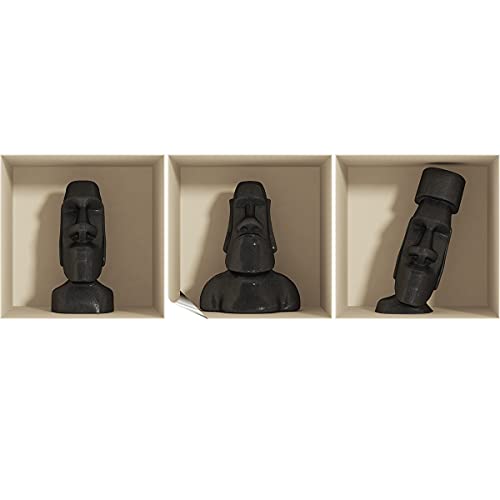 Stickers adhésifs 3D | Sticker Mural Autocollant effet 3D Statue de l'île de Pâques - Stickers muraux Chambre Adulte - Stickers muraux 3D - Déco Salon - Autocollants muraux Trompe l'oeil | 30x90cm