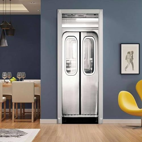 Stickers Porte Poster Porte De Métro Argentée 77 X 200 Cm Papier Peint Porte Trompe L'Oeil Pour Salon Chambre Décoration De La Maison Stickers Muraux Imperméable Stickers Amovibles - Photos
