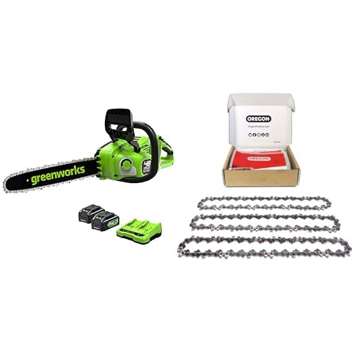 Greenworks Tronçonneuse à Batterie avec Moteur Sans Balais, Longueur Guide-Chaîne 14 Pouces (35cm), 2 Batteries 40V 2Ah, Chargeur-GD40CS15K2X + Greenworks 35cm Chaîne