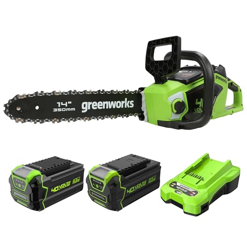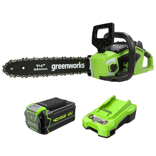 Bundle of Greenworks Tronçonneuse à Batterie avec Moteur Sans Balais, Longueur du Guide-Chaîne de 14-Pouces (35 cm)+ Batterie 40V 4Ah et Chargeur Universel Puissance 2A