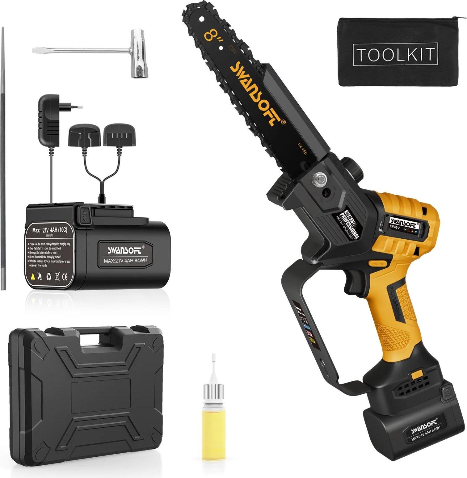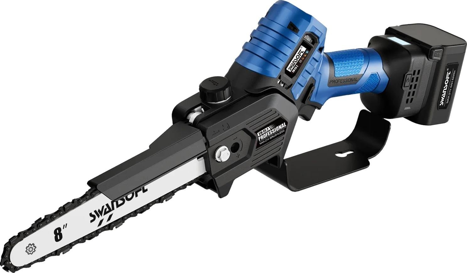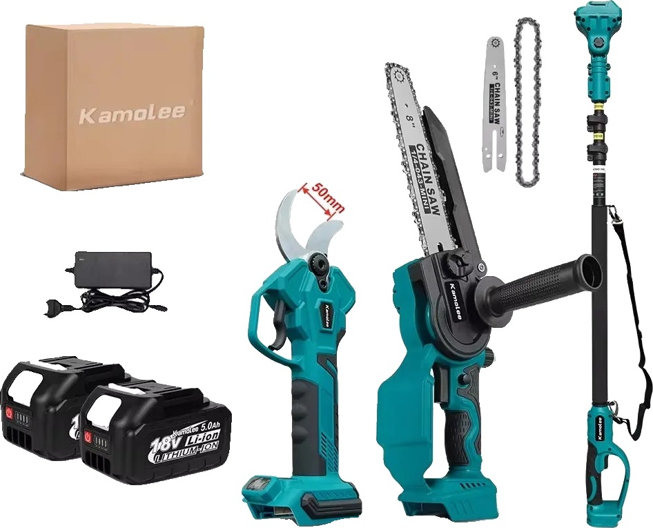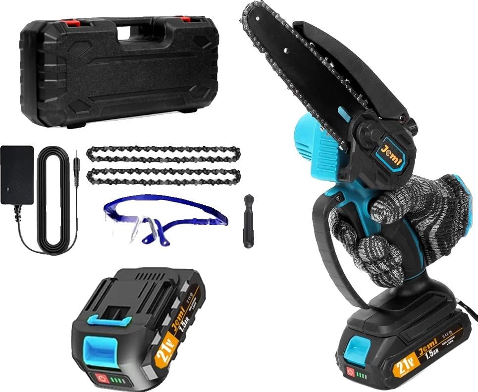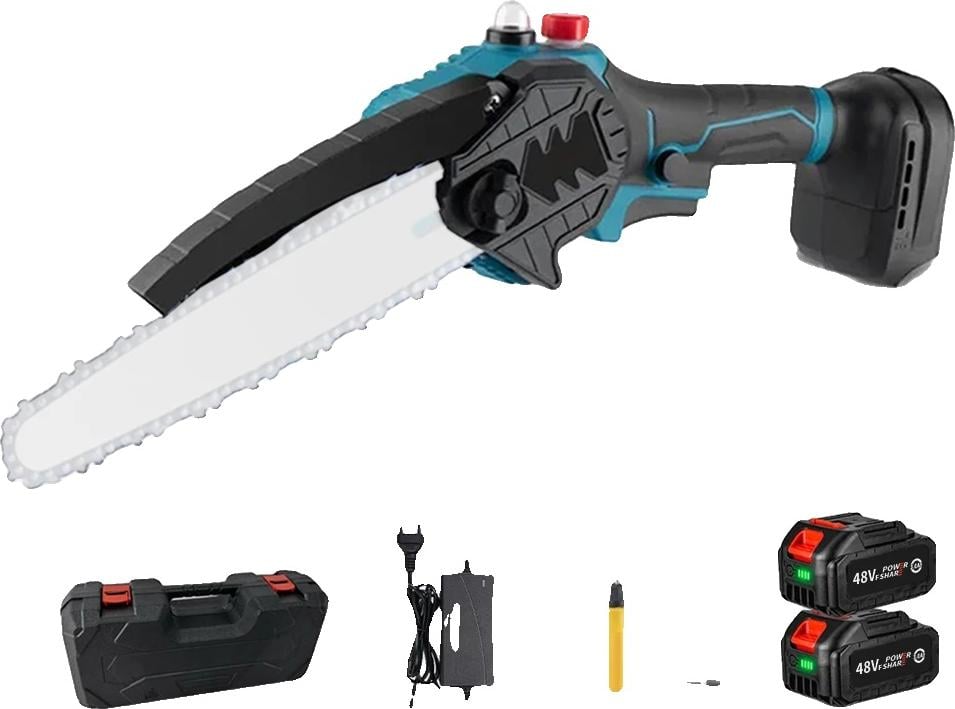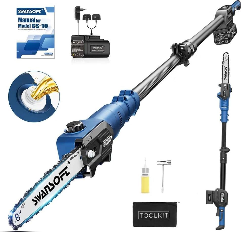 Tronçonneuse, perche télescopique, sur batterie, bleu, deux batteries, tronçonneuse à chaîne polaire