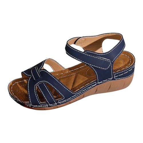 Générique Sandales Compensées Cuir Femme Été Confortable Orthopédiques Sandale À Bout Ouvert Réglable À Bride La Cheville Chaussures Claquette Tropezienne Femme Mules Été Sandales Cuir