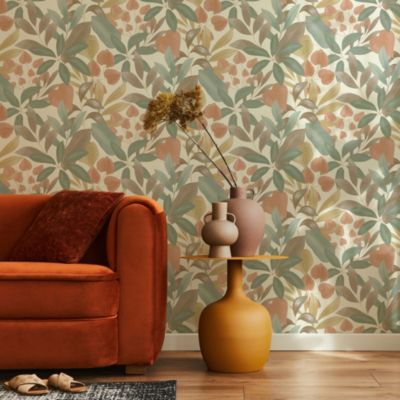 Papier peint vinyle expansé intissé feuillage Tropico vert, terracotta L.1005 x l.53cm Rasch