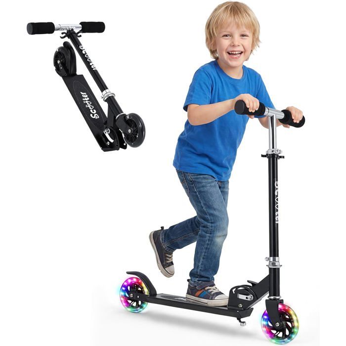 Trotinette Enfants à 2 Roues LED Roues Lumineuses Hauteur Réglable sur 4 Niveaux Légère et Pliable Pour Enfants 3-12 ans - Noir