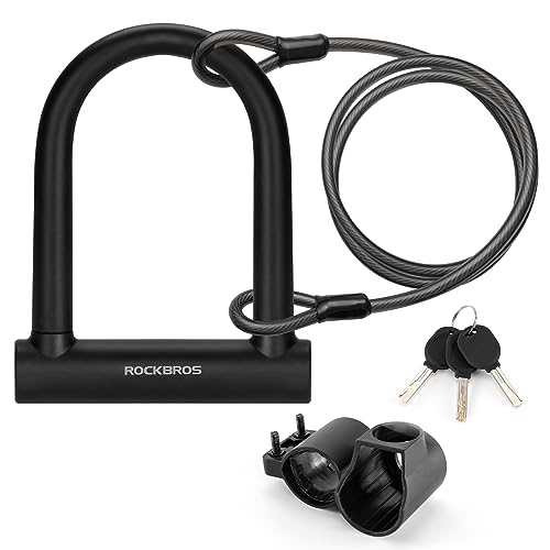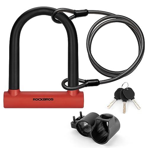 ROCKBROS Antivol en U de Vélo 3 Clés Cadenas Vélo Avec Câble 2m Φ11mm Support Serrure U-Lock Acier Allié Haute Résistance Vélo Électrique Moto Vélo Pliant Trotinette Scooter Noir Rouge