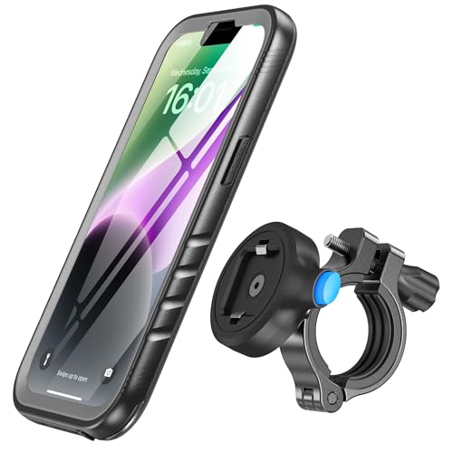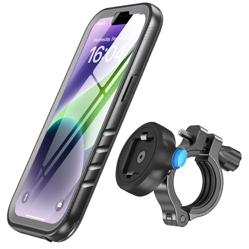 Cozycase Support pour iPhone 14 Pro Velo Moto Etanche Anti Vibration- Rotatif Metal Suport Telephone Vélo Route/VTT/Scooter/Trotinette/Guidon/Bicyclette Sportive avec Écran Tactile Pluie Bike Holder