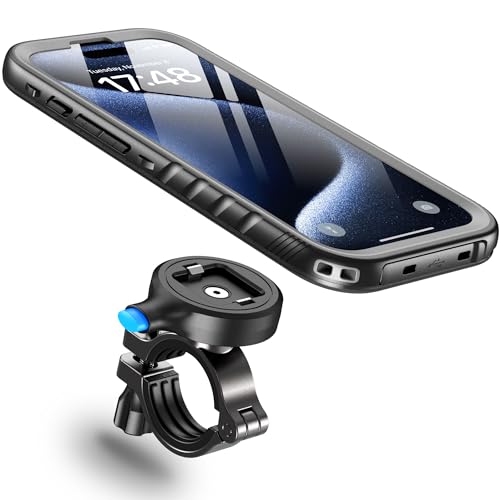Cozycase Support pour iPhone 15 Velo Moto Etanche - 【Anti Vibration- Rotatif】 Metal Suport Telephone Vélo Route/VTT/Scooter/Trotinette/Guidon/Bicyclette Sportive avec Écran Tactile Pluie Bike Holder