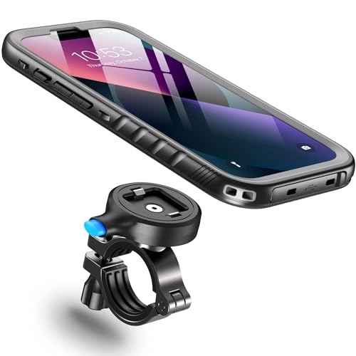 Cozycase Support pour iPhone 13 Pro Velo Moto Etanche Anti Vibration- Rotatif Metal Suport Telephone Vélo Route/VTT/Scooter/Trotinette/Guidon/Bicyclette Sportive avec Écran Tactile Pluie Bike Holder