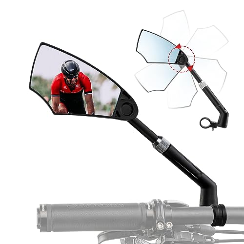 ROCKBROS Rétroviseur HD de Vélo Anti-Éblouissement Miroir Diamètre Guidon 20-23mm Rotatif 360° Extensible Résistant Choc Empêche Éclats de Verre Voler Scooter Trotinette Électrique Gauche/Droite Noir