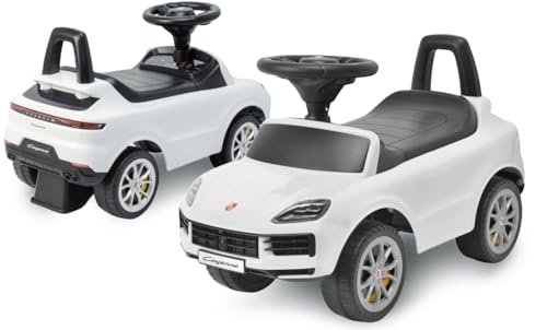 TURBO CHALLENGE - Trotteur Porsche Cayenne - Porteur - 119301 - Roues Libres - Blanc - 25Kg Max - Plastique - Piles Non Incluses - Jouet Enfant - Cadeau - Anniversaire - Sonore - À Partir de 12 Mois