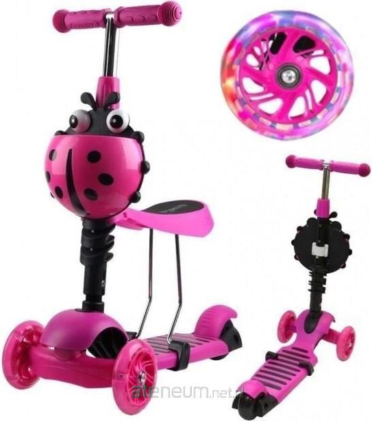 Enero Biedronka 3-in-1 Trottinette d'équilibre & Trotteur rose - Réglable en hauteur, ne bascule pas, trottinette enfant multifonctionnelle