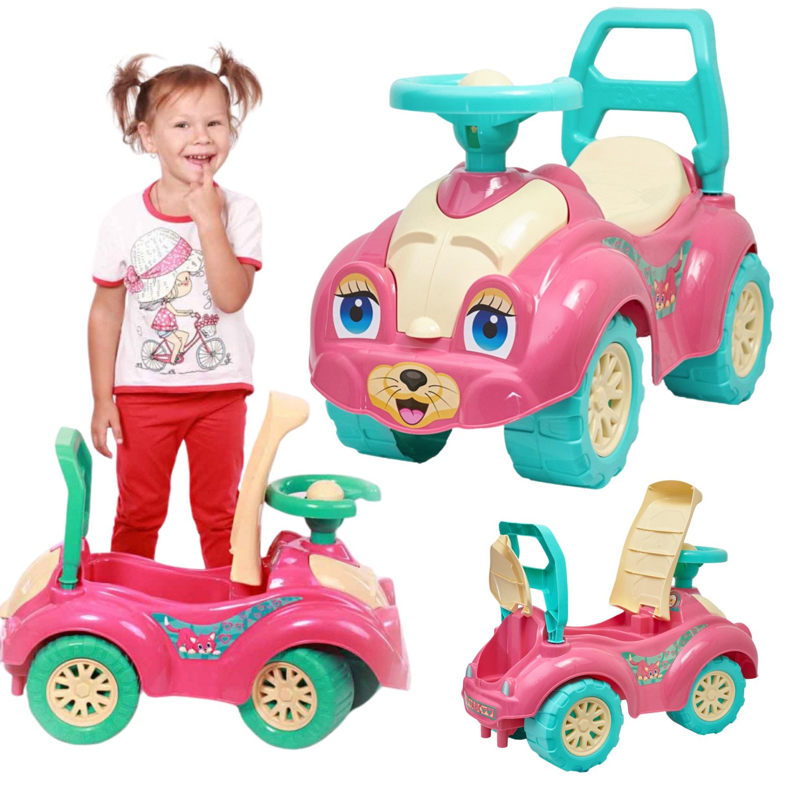 Trotteur avec klaxon, pousseur, siège ouvrant, coloré