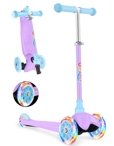 Hurtle Trottinette Enfant, Trottinette 3 Roues, Patinette Enfant Pliable avec Hauteur Ajustable, Plateau Antidérapant, LED Roues Lumineuses, Scooter pour Fille/Garçon de 2 à 8 Ans