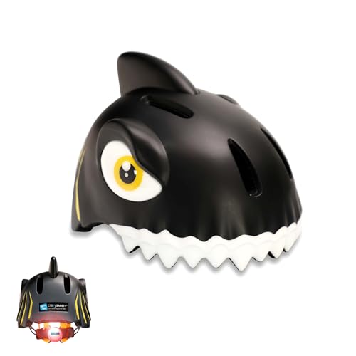 Crazy Safety Casque de vélo pour Enfants | Casque Enfants 2-7 Ans pour vélo, Skateboard, Cyclisme, vélo de Course, Trottinette, Rollers | Casque 3D Animalier léger et Ajustable 49-55 cm (Requin Noir)