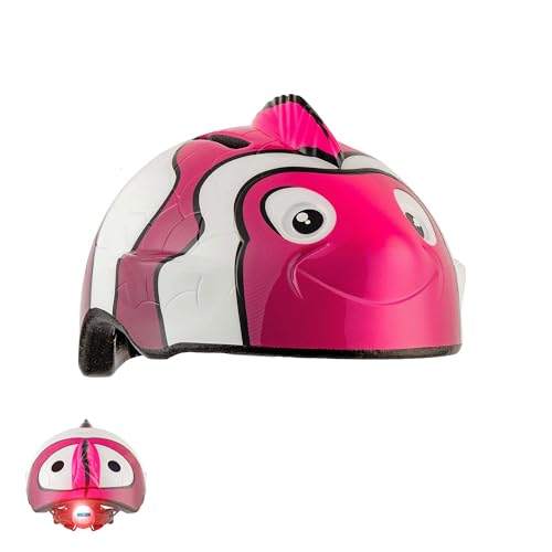 Crazy Safety Casque de vélo pour enfants | Casque enfants 2-7 ans pour vélo, skateboard, cyclisme, vélo de course, trottinette, rollers | Casque 3D animalier léger et ajustable 49-55 cm (Poisson Rose)