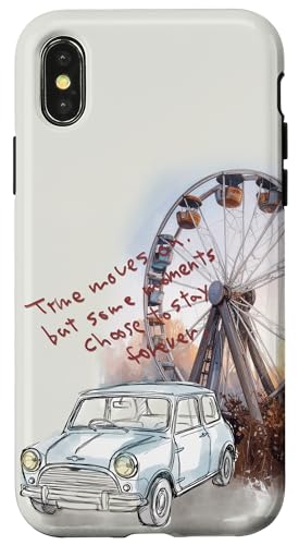 Voiture Classique et Grande Roue rétro Vintage nostalgique Emo Design Anglais Simple Adulte Mignon personnalité Coque pour iPhone XS Max