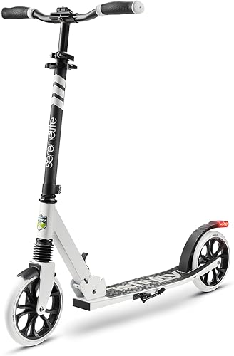 SereneLife Trottinette Pliable - Trottinette à Pousser pour Adolescents et Adultes avec Poignée en Caoutchouc, Plateau en Alliage, Guidon T-Bar Réglable, Roues Lisses, Manœuvre Facile (Noir & Blanc)