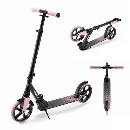 Soke Trottinette Enfant Et Adulte Jusqu'à 100 kg Trottinette Pliable Roues 200 mm Roulements ABEC-9 Guidon Ajustable Construction Durable Rose