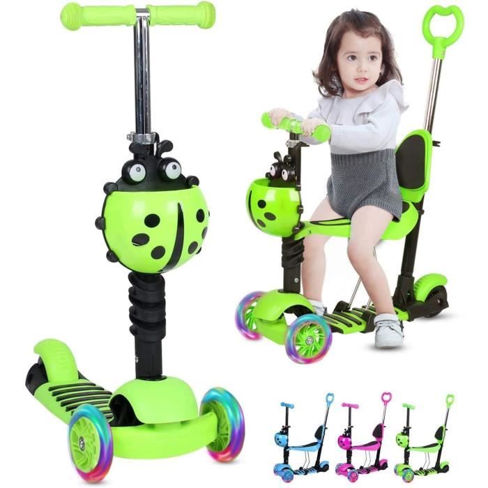 Trotinette enfant 2 ans - MIPAN - Trottinette 3 roues - Roues lumineuses -Siège Amovible - Réglable - Pour 2 à 7 ans - Vert