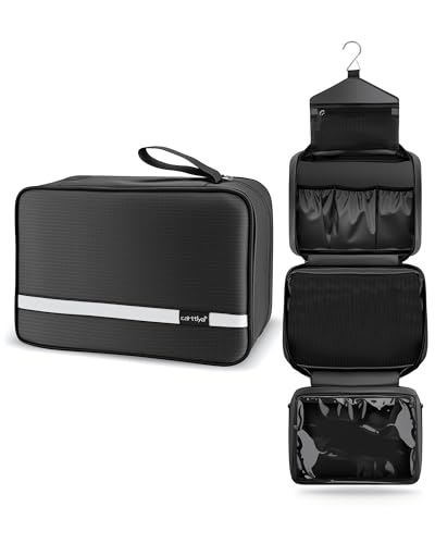 Carttiya Trousse de Toilette-Trousse de Toilette Voyage pour Homme et Femmes, Sac de Toilette Voyage Imperméable et Suspendu, Noir