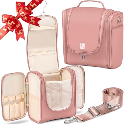 BOACAY Trousse de Toilette Femme, Homme, Enfant, Sac de Voyage Cosmétique à Suspendre, Vanity Souple et Pliable pour la Douche ou Maquillage