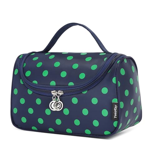 Yeiotsy Trousse de Toilette de Voyage pour Femme Motif Pois, Bleu Marine, M