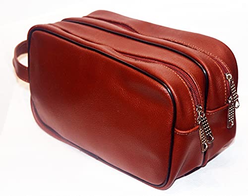 ALASSIO 2702 Trousse de Toilette en Cuir véritable avec Fermeture éclair et Fermeture éclair à Franges en Cuir, Petite Poche, Trousse de Toilette, Trousse de Toilette pour Voyage, Trousse de